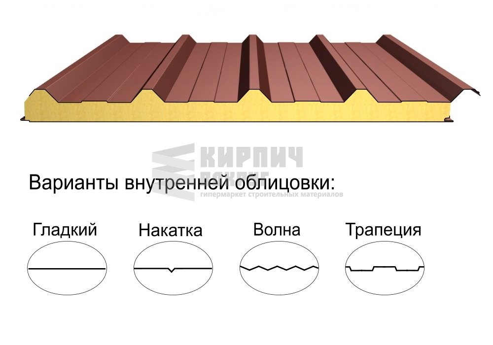 В интернет-магазине "Кирпич Вокруг" Вы можете купить Кровельная трёхслойная сэндвич-панель кровельный профиль 50мм 1000мм с видимым креплением минеральная вата Полиэстер Металл Профиль в Королеве, а наши специалисты готовы вам помочь с выбором по адресу: , или оказать консультацию по телефону: .
